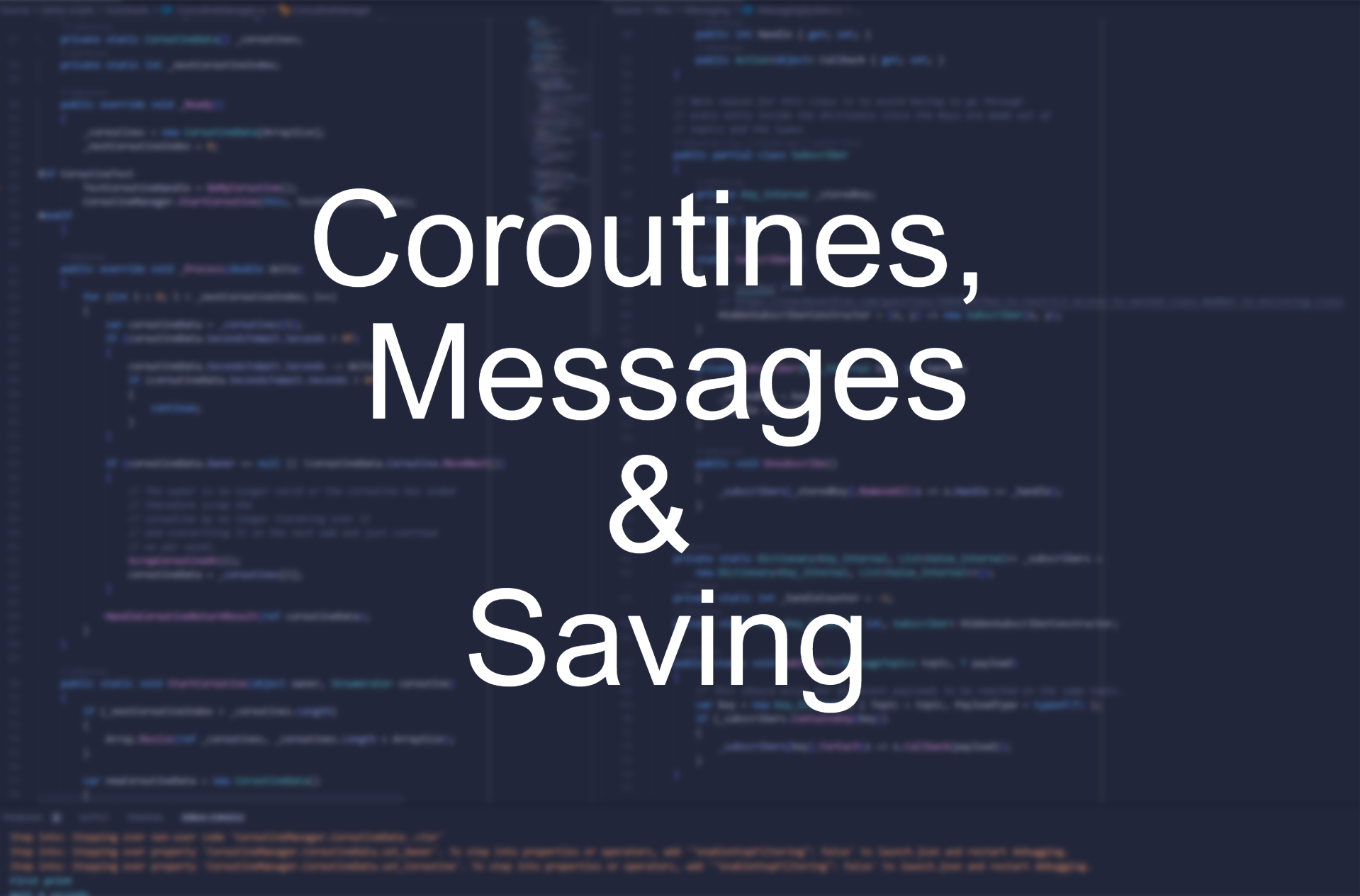 The base of this is the IEnumerator, which allows the suspension of the execution. And the core principle is to gather all of the coroutines in a single array and iterate over them every game tick. If a coroutine needs a time-based pause it can return WaitSeconds class. Initially, I was accounting for ints, doubles and floats, but decided against it for simplicity reasons – now instead of having to account for every numeric type, I expect a simple wrapper around a double (which I chose because the delta time coming into the tick function is also a double).